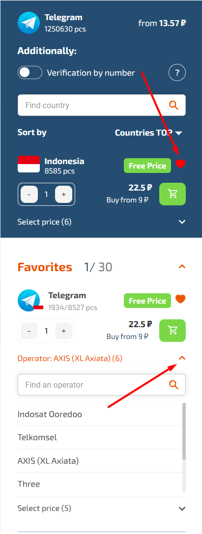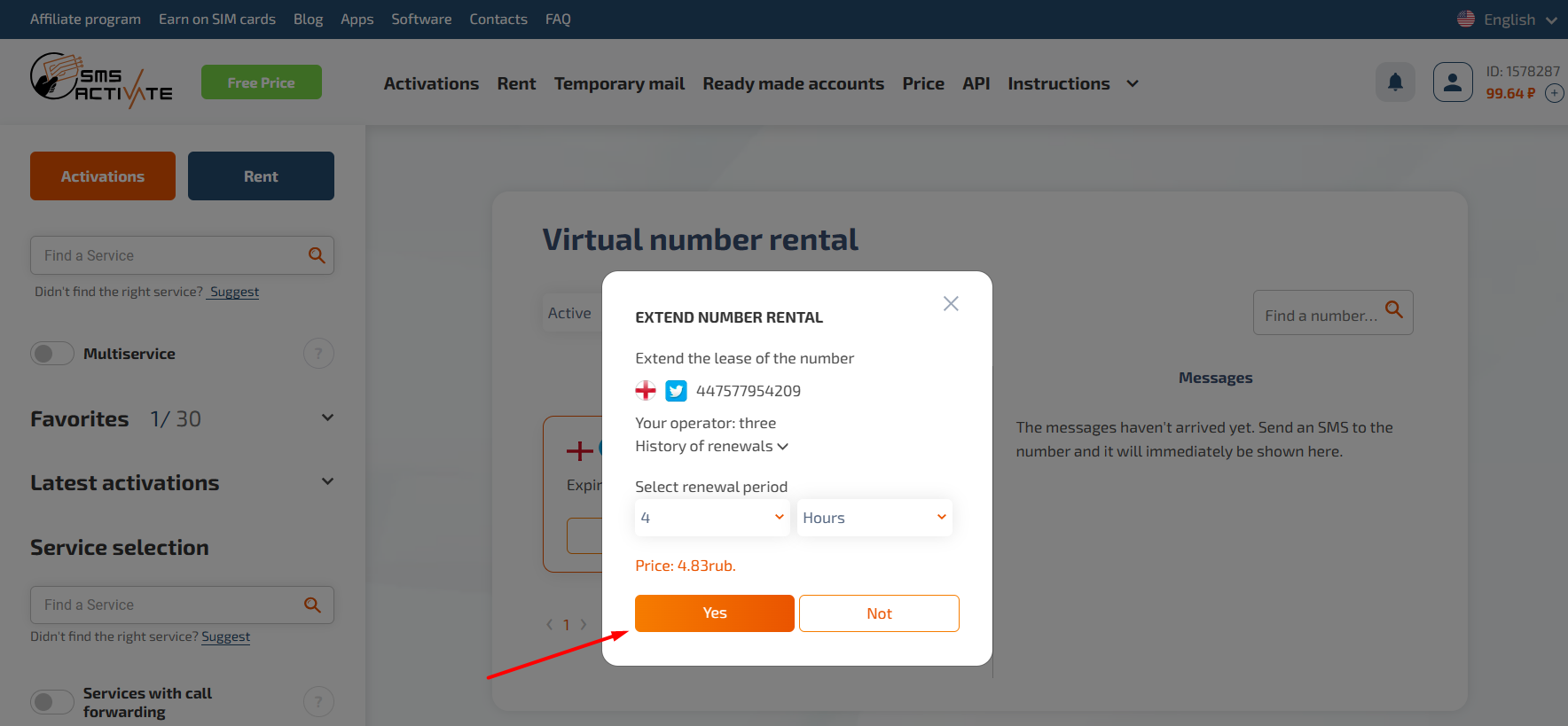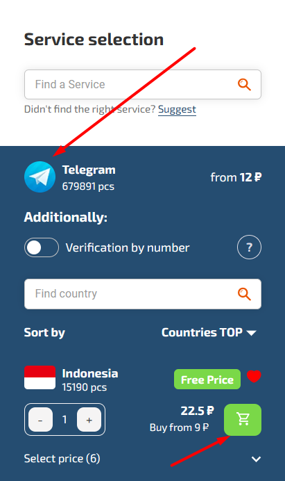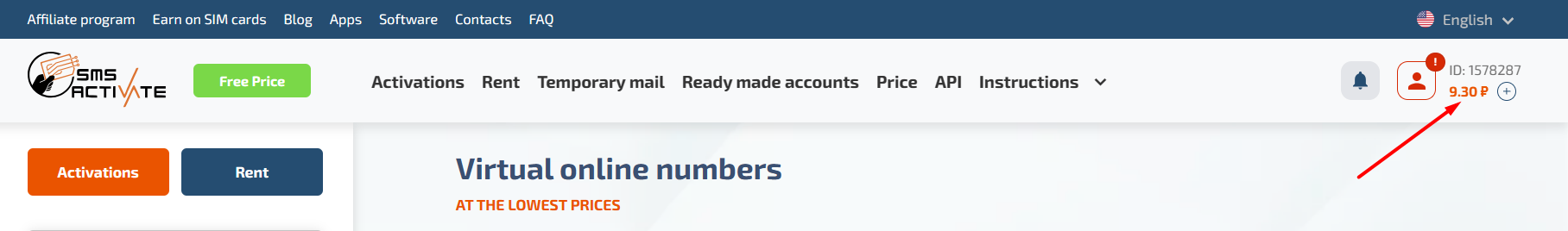 Вы близки к цели. Теперь вам нужно получить виртуальный номер, который вы будете использовать для регистрации своей учетной записи. В левом меню выберите нужную вам услугу и нажмите значок тележки. .
