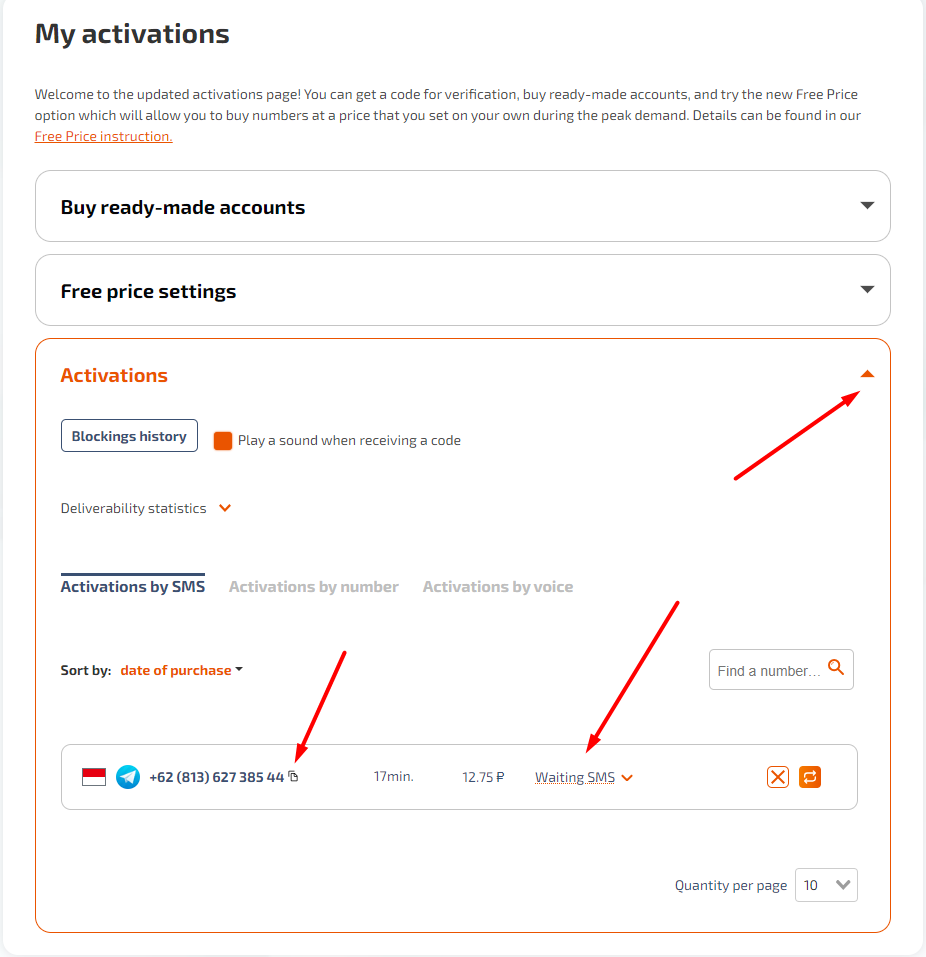 Не забывайте, что для использования иностранных номеров необходимо подключение к Прокси или VPN.История покупок