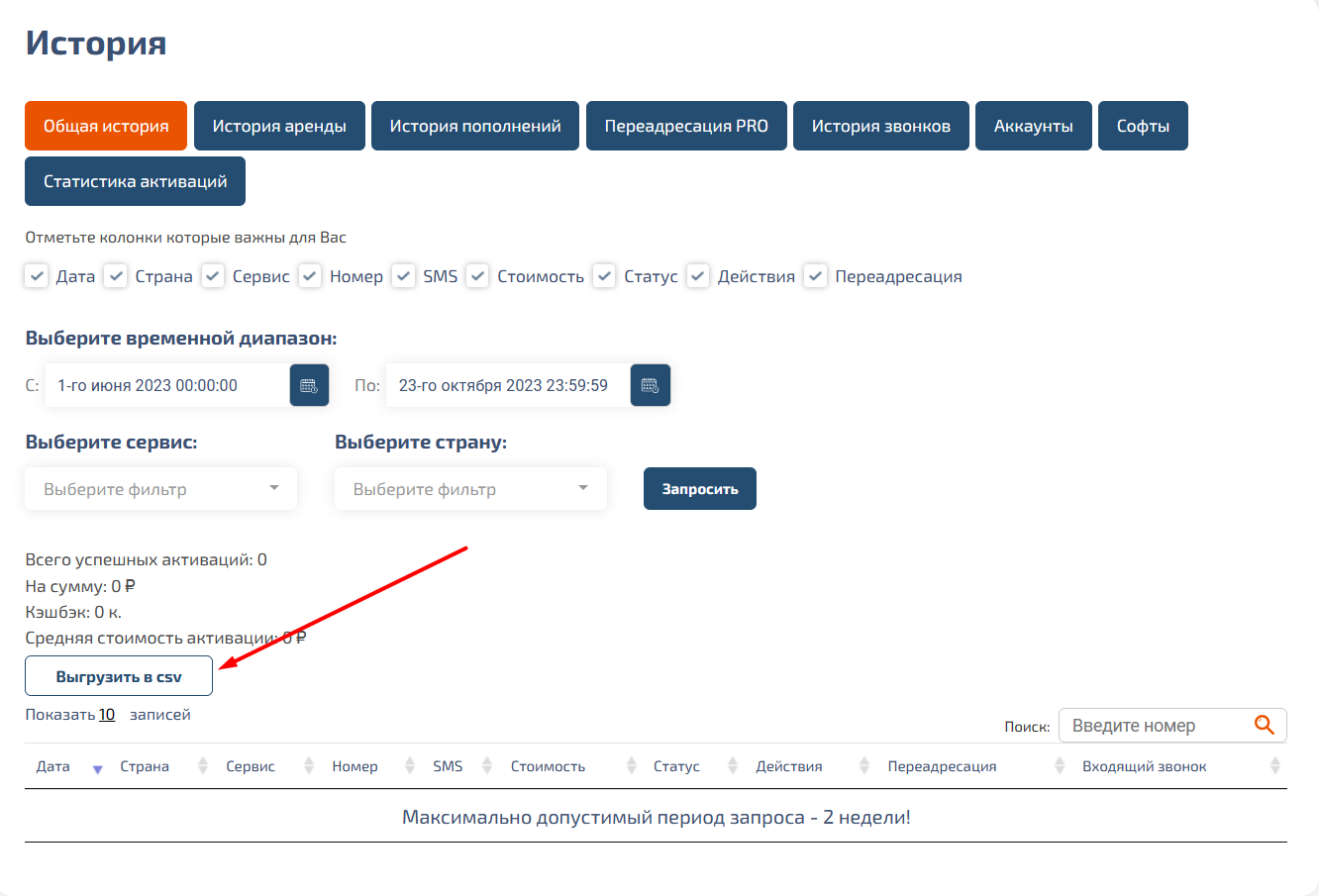 Все ваши активации сохраняются во вкладке «История», выберите необходимый период времени и настройте фильтры. Вы обязательно найдете нужный вам номер.