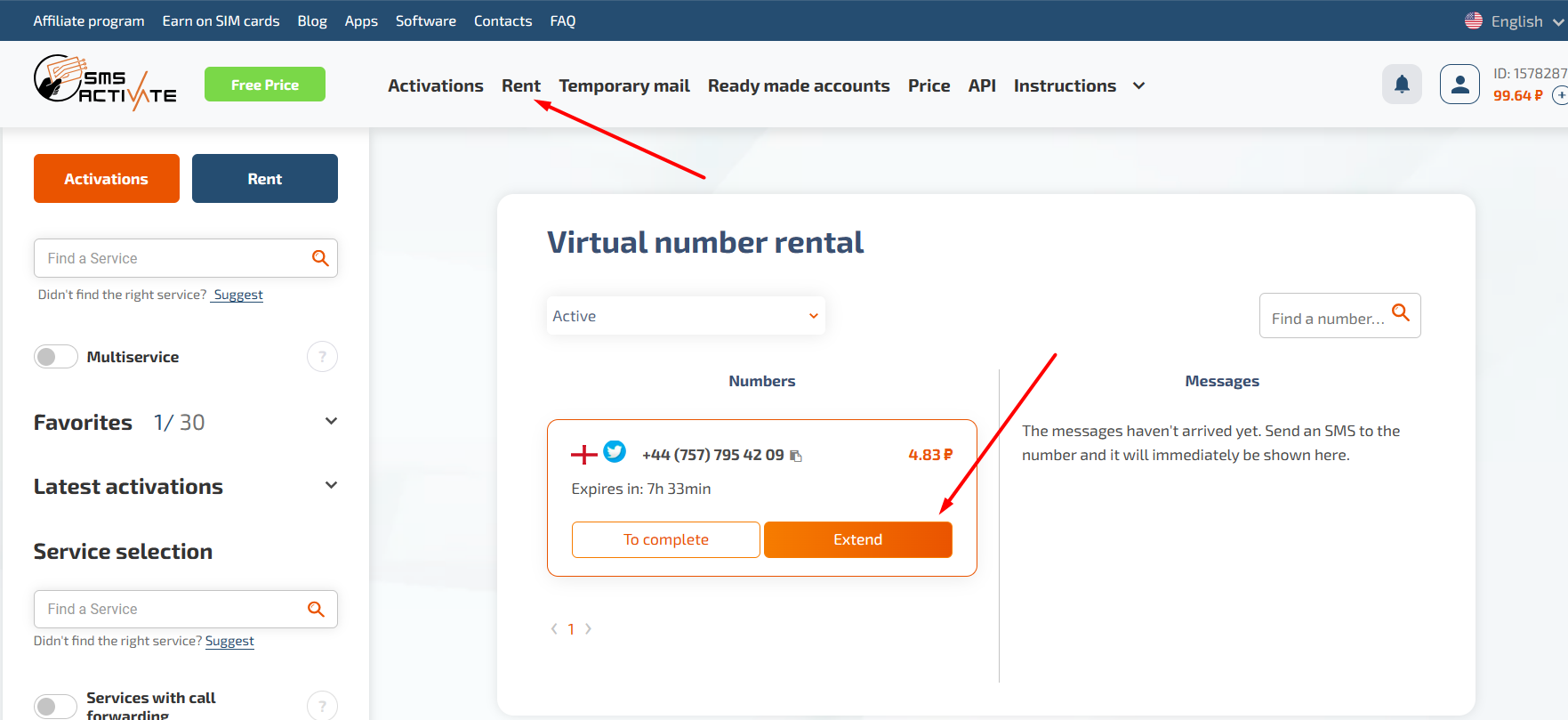 2. Арендовать номер под конкретную услугу. В этом случае вы получите SMS только от выбранного вами сервиса.